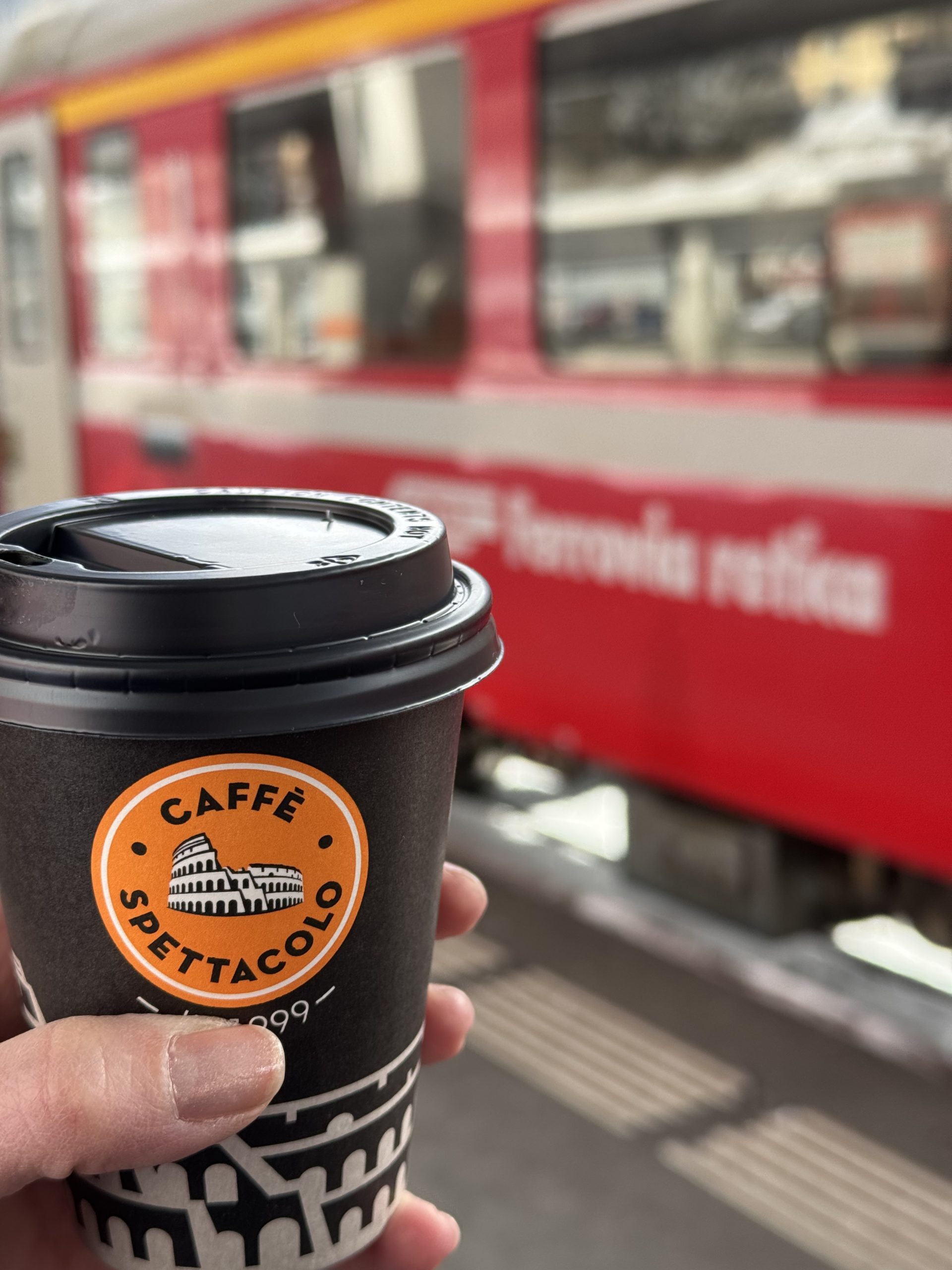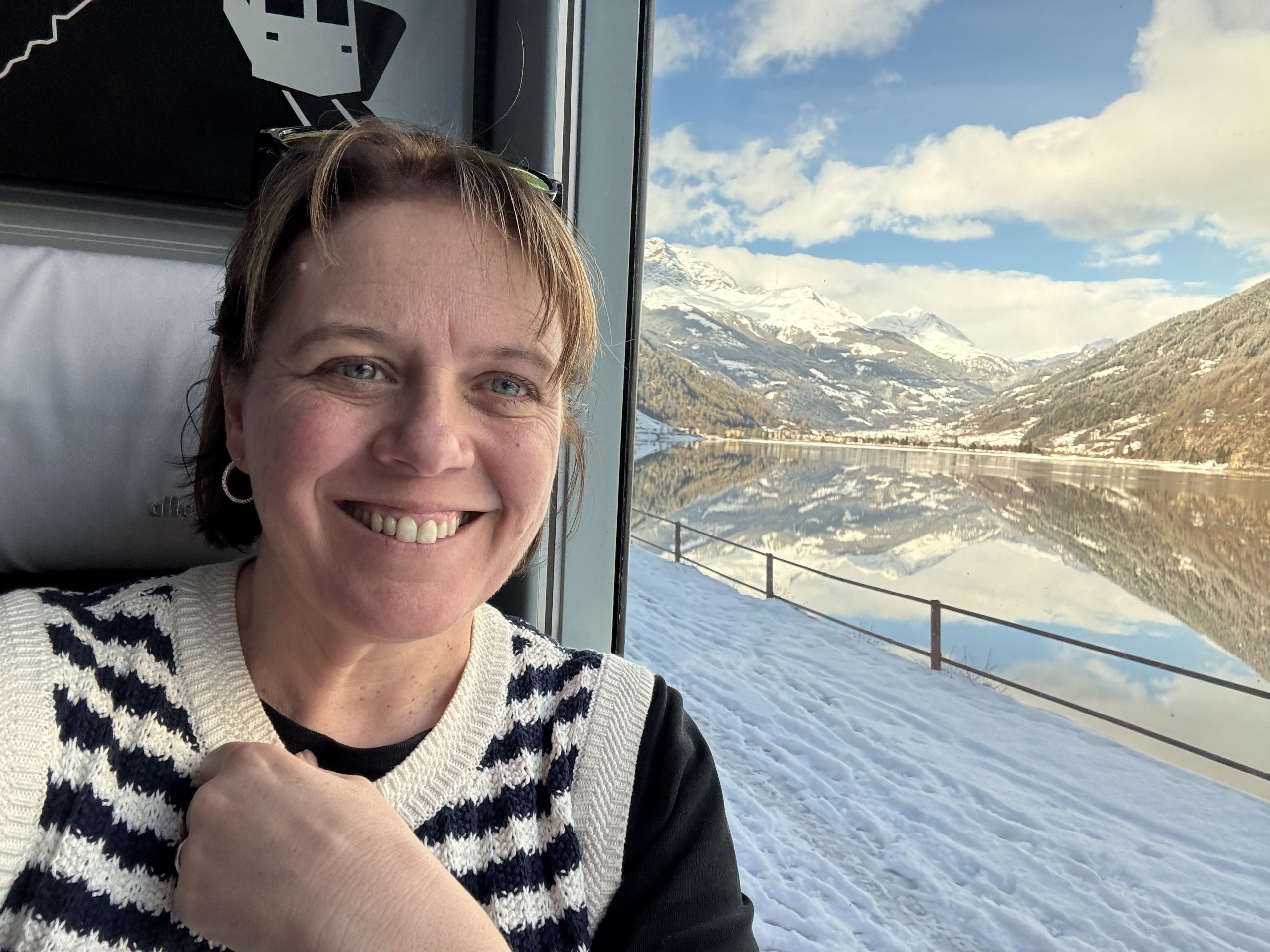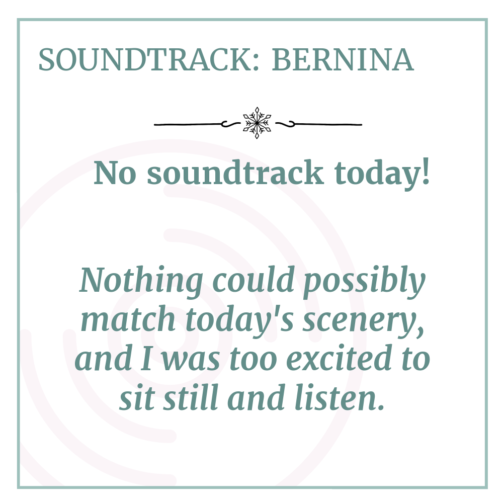 We set off just after 6am (in the rain! First rain of the trip – a shock), found a handy supermarket and good coffee at St Gallen station, and discovered our first train ready and waiting early, giving us time to settle in. The first hour passed gently and we were changing trains in Landquart to head to St Moritz just as the day was getting fully light.