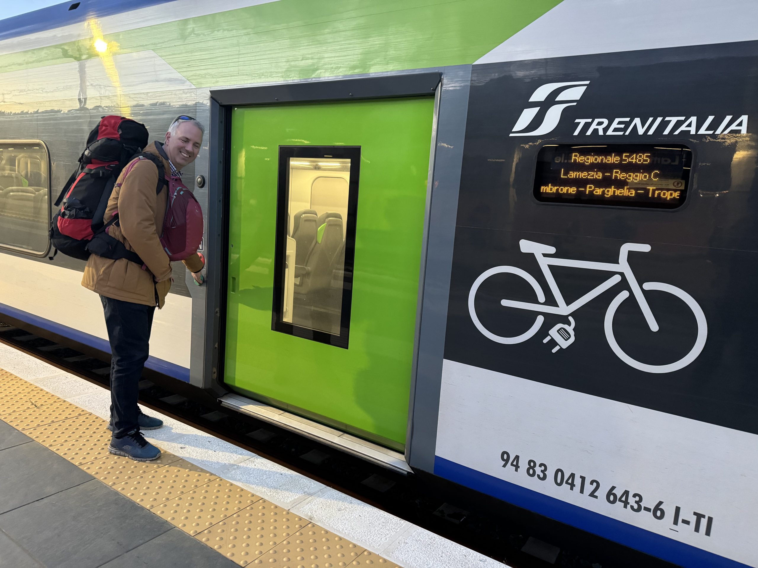 The final train of the day was a beauty. The regional trains in Calabria are a bit of a revelation. Modern, clean, smart – power at every seat, big comfortable chairs. The regional trains all across Europe have often been the least comfortable – many of them old and fairly battered. These were definitely the best we’d ridden so far.