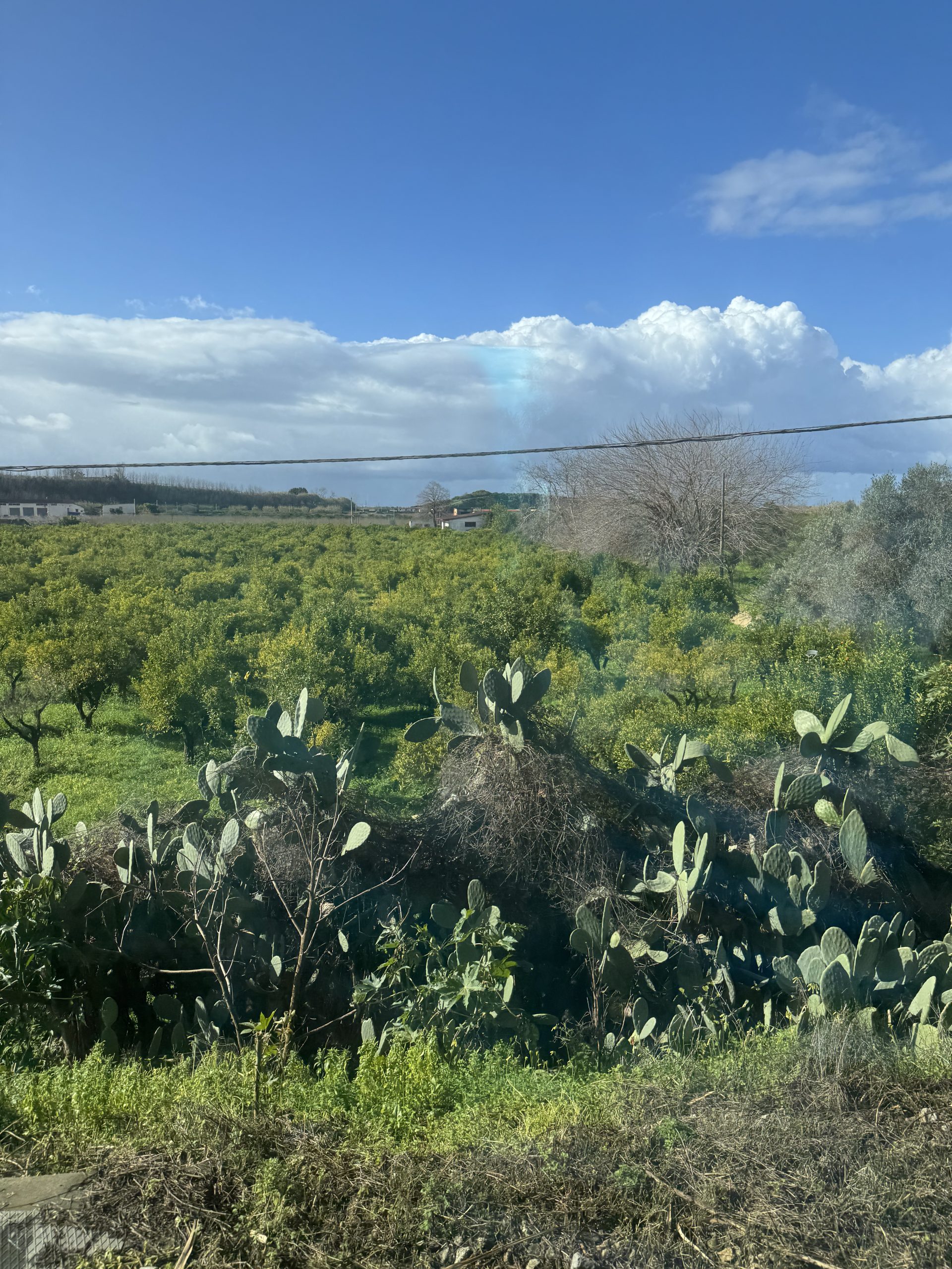A lovely ride in another impeccable regional train took us into a world of orchards and sea views. Cacti by the line, oranges on the trees. Unbelievable that we’ve come all the way from the frozen Arctic forests to this.