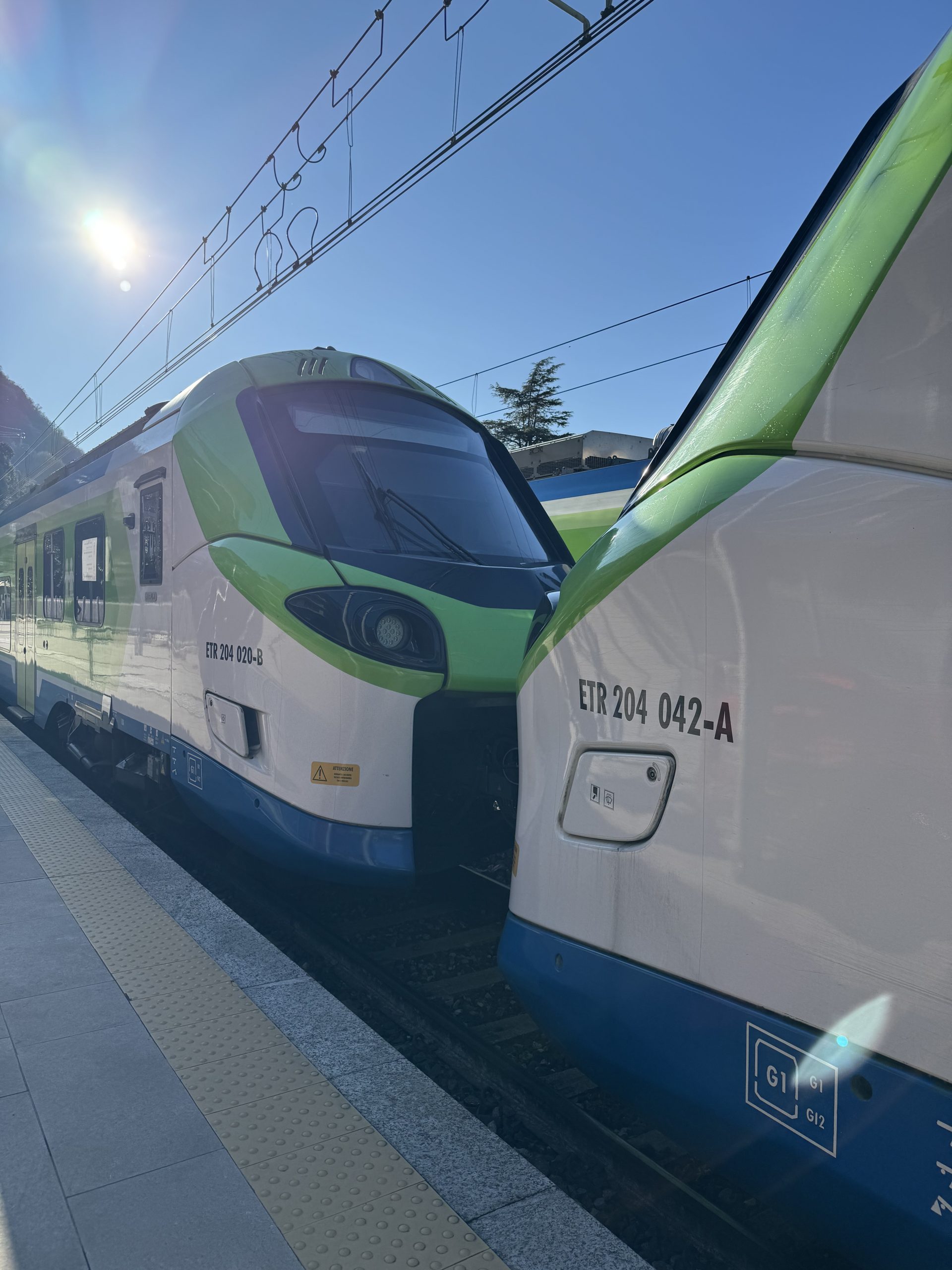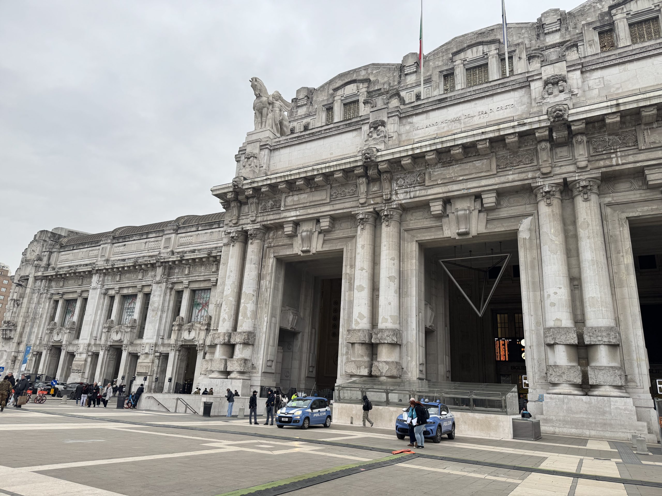 We had set off on the Bernina line from snowy St Moritz. Calm, orderly, quiet. Biting cold, snow on the platforms. We emerged into Tirano and walked slap bang into a metaphorical wall of … sheer Italy. Sunshine and warmth in the air. People, everywhere. Station screens not working, staff shouting directions, a crush of people in all directions heading for trains. We jumped straight onto the train going to ‘Milano, Milano, binario uno Milano’ and sat, slightly shell-shocked, for an hour in a noisy, packed train. It always takes me a while to adapt to the sheer exuberant, passionate noise that is Italy.