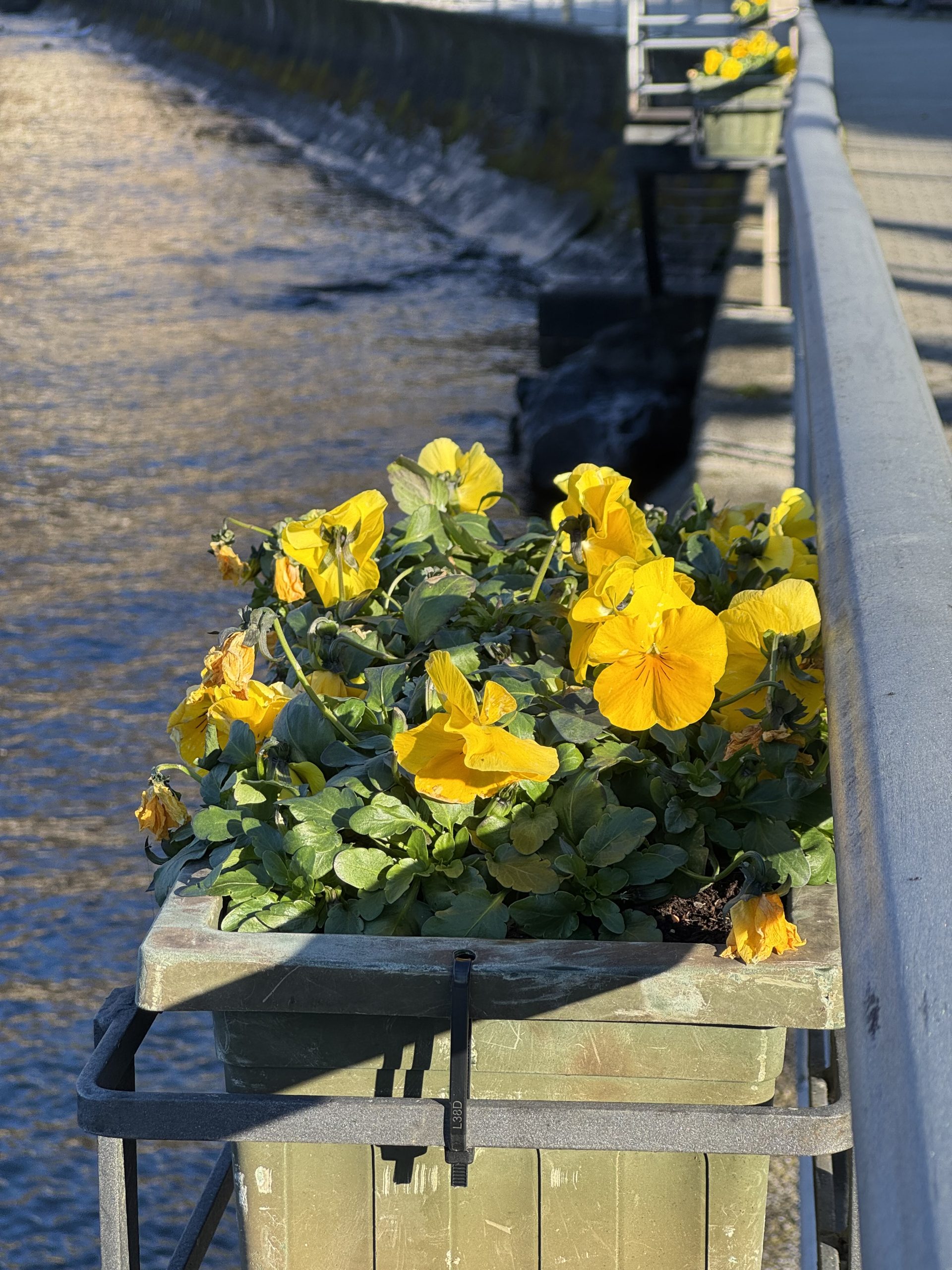 Warmth. The feel of sunshine on my face and the taste of it in the air. Light on the lake turning distant hills and mountains into hazy layers stretching back from the glistening waters. Palm trees. Flowers! Bright yellow violets shining so vividly in the sunlight. Small birds flitting around in the trees.