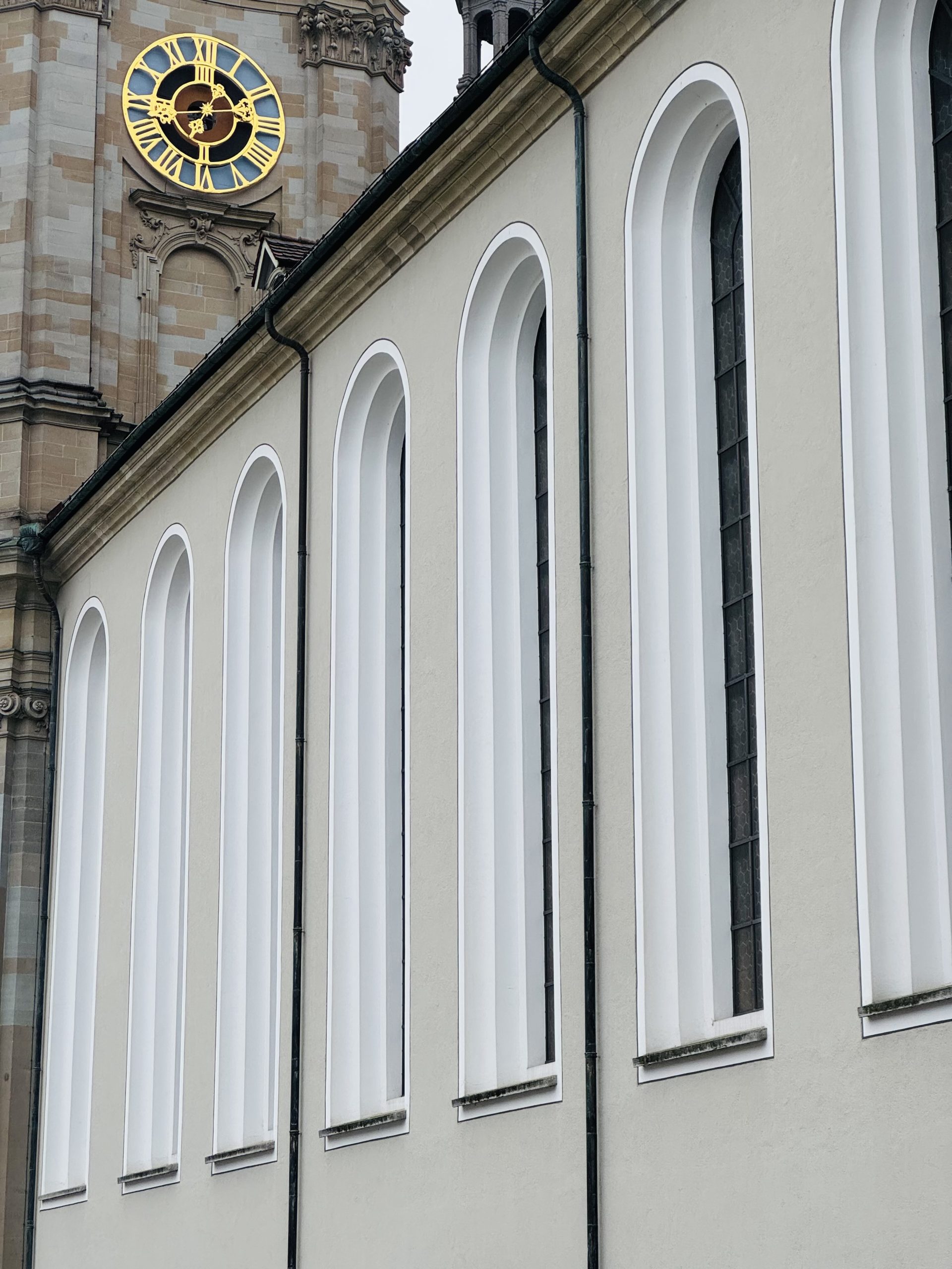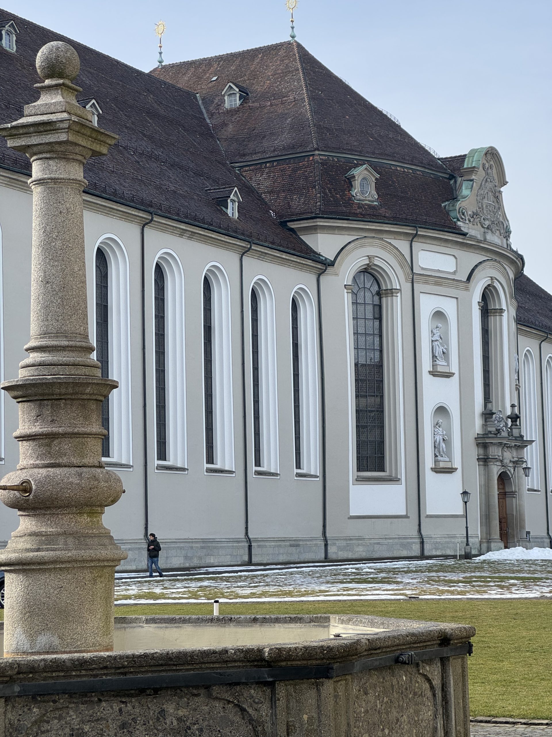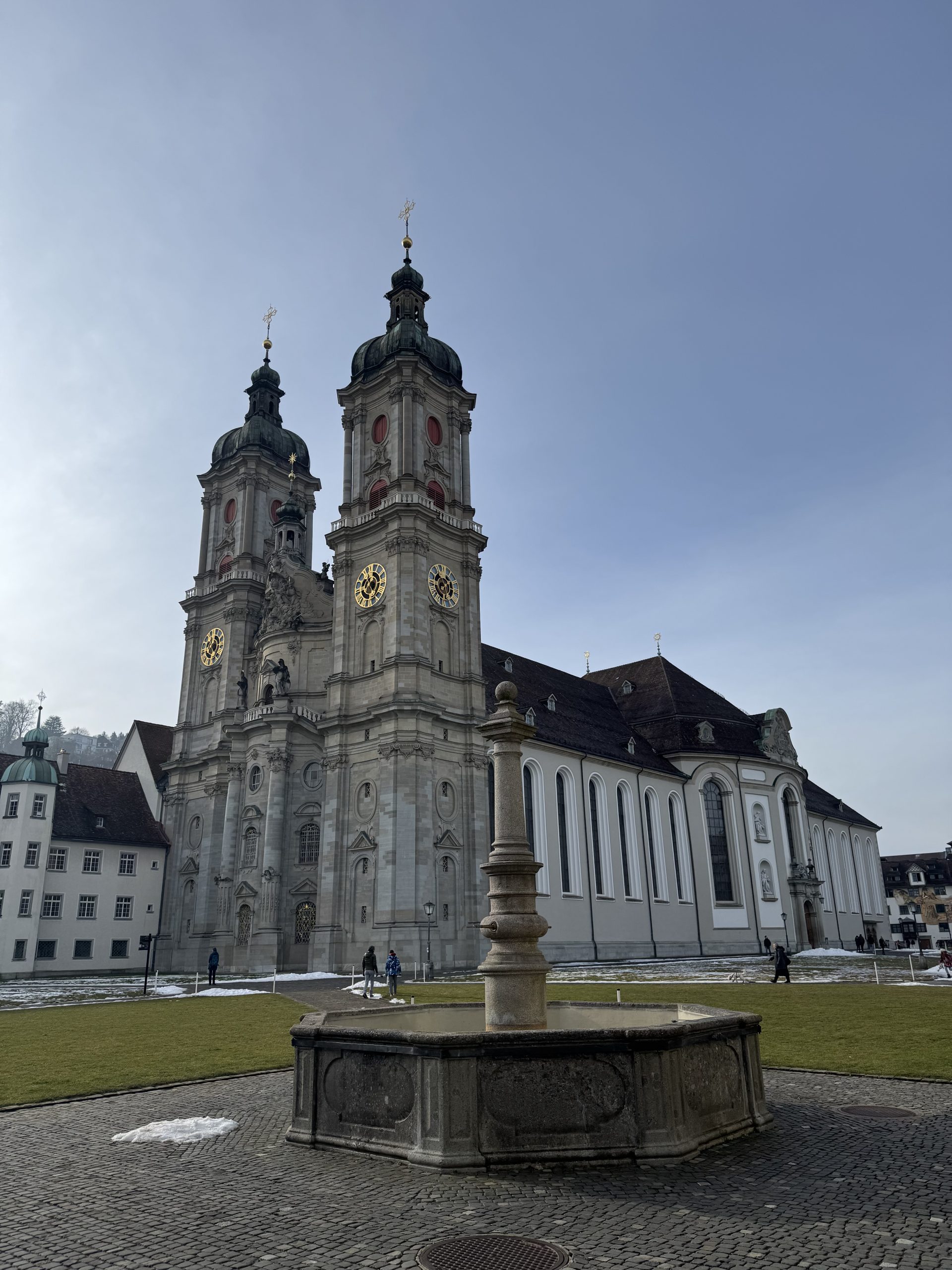 And then you turn a corner, wandering among these classic Swiss buildings, all colourful signs and wonky timber and – wow. In the heart of St Gallen is the huge white-stone Abbey Cathedral. A vast open grassed courtyard, monastery buildings wrapped around one end and the imposing, baroque cathedral building at the side. It’s an astonishing sight – more Rome than Swiss timber.