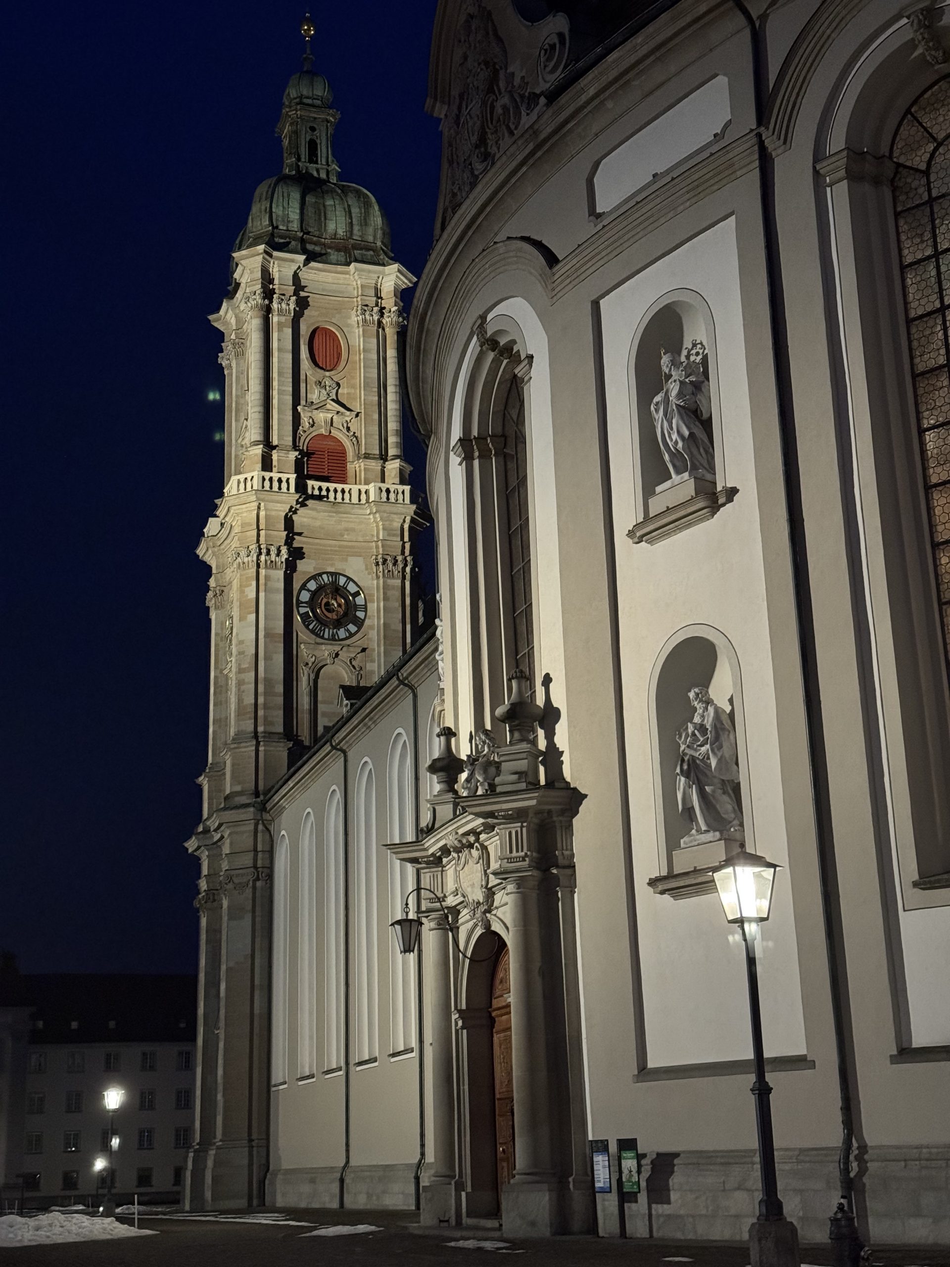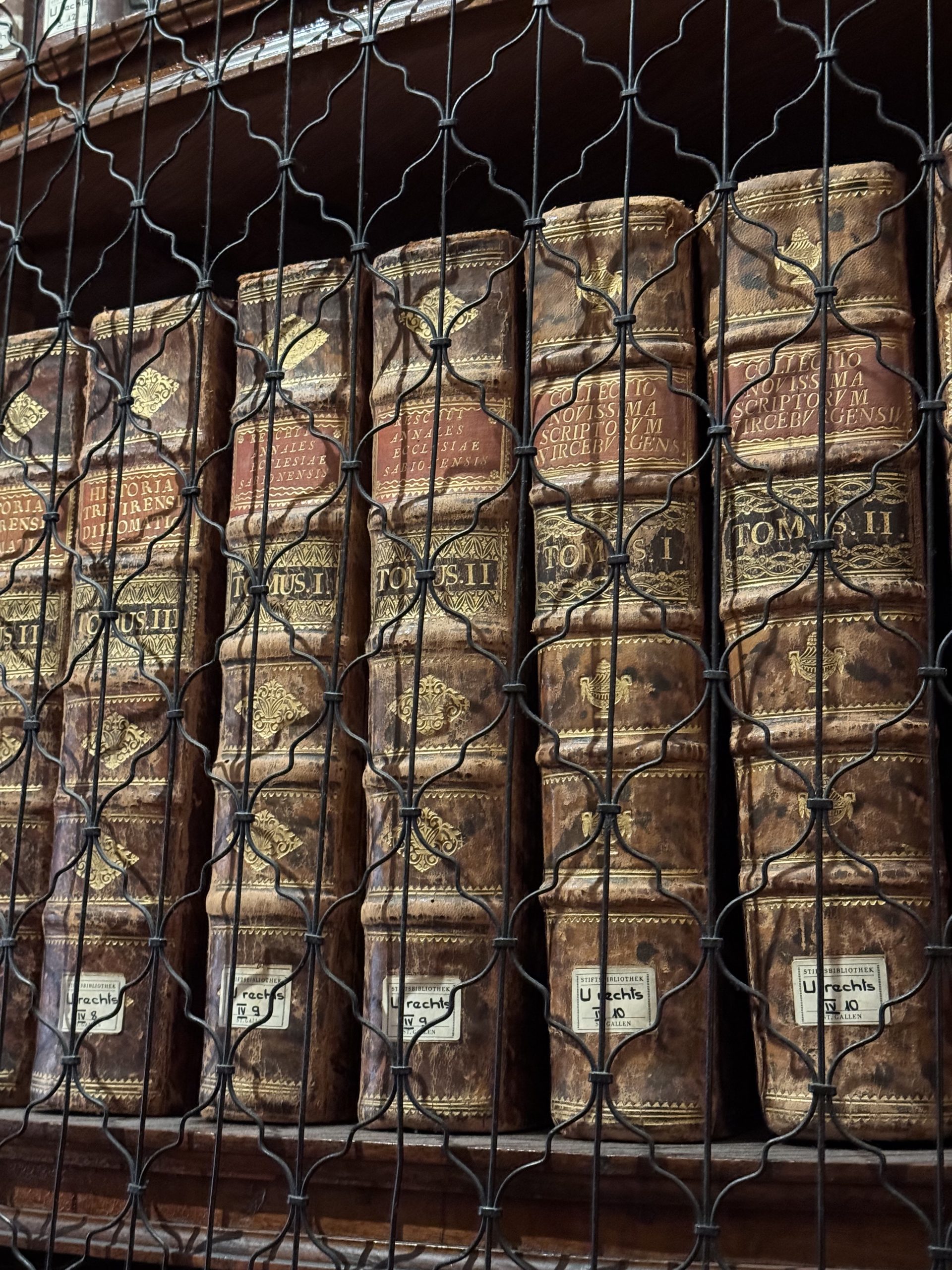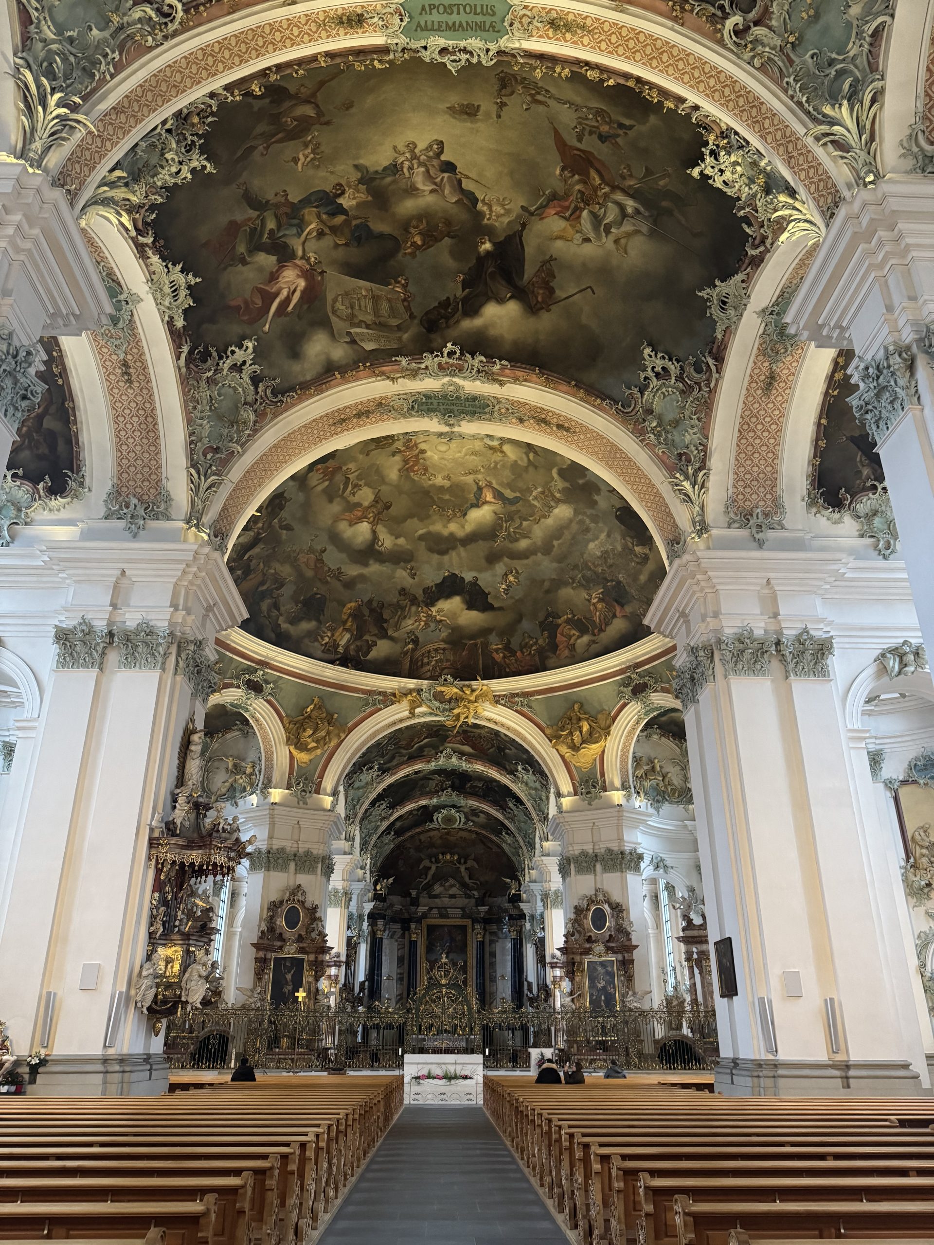 And then you turn a corner, wandering among these classic Swiss buildings, all colourful signs and wonky timber and – wow. In the heart of St Gallen is the huge white-stone Abbey Cathedral. A vast open grassed courtyard, monastery buildings wrapped around one end and the imposing, baroque cathedral building at the side. It’s an astonishing sight – more Rome than Swiss timber.