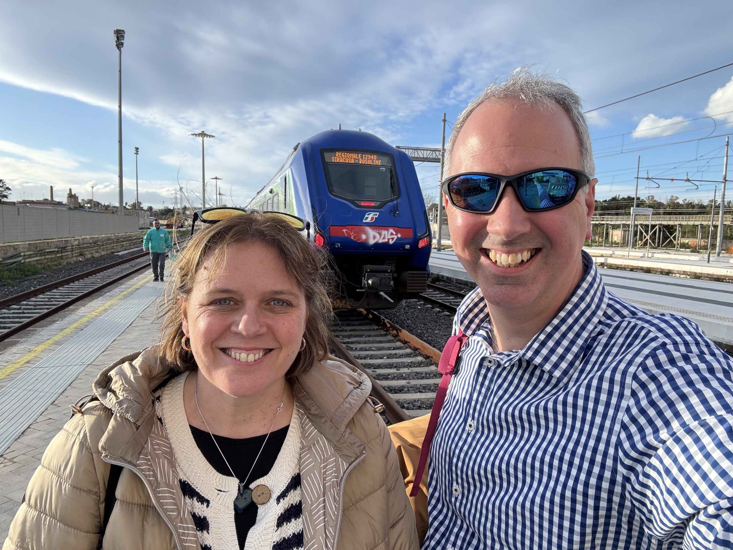 Pozzallo approached. We stood by the doors, and watched as the train pulled into the (slightly desolate) station. Doors open. Selfie in doorway, much to the bemusement of the handful of other passengers. High five and a hug. Doors close and on we go.