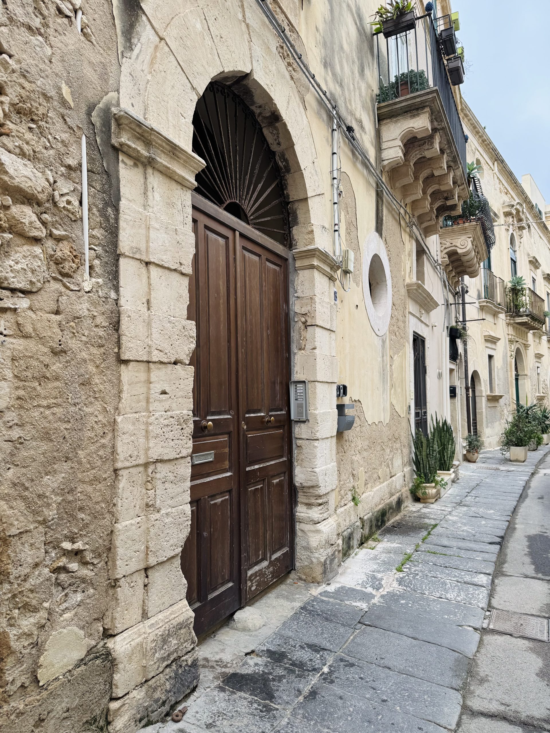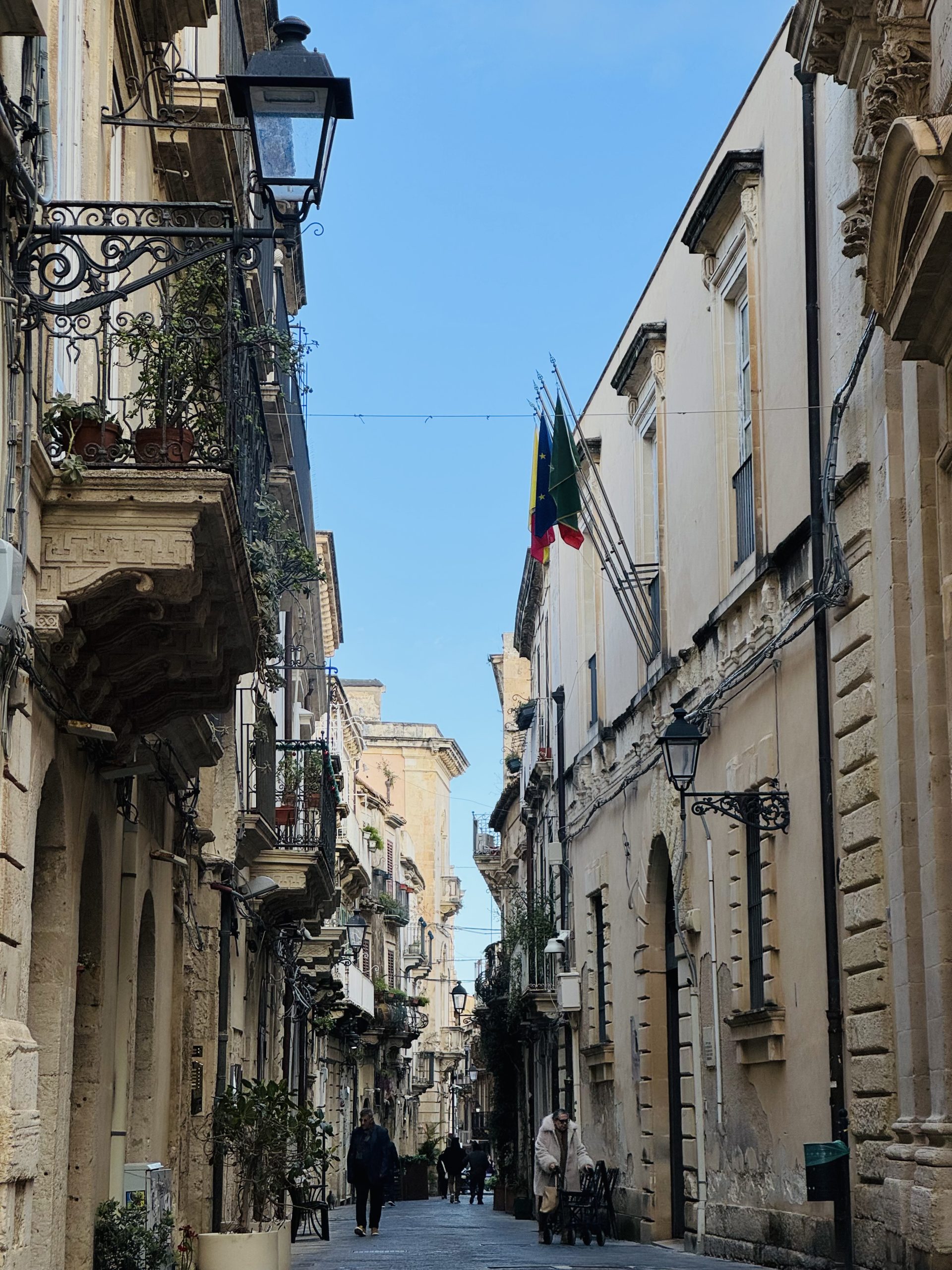 Ortigia is the kind of place that exists in a dream of Italy, and shouldn’t actually be real. A tangle of tiny streets, all balconies and flowers and beautiful lamps. Insanely impressive baroque churches hidden in plain sight in the midst of all of this. Small bars and good restaurants lining the side of streets and alleys and squares. Tantalising glimpses of the sea whenever the lanes straighten out enough to allow you to see through. The kind of place you can get lost in, wandering happily and never finding the same street twice.
