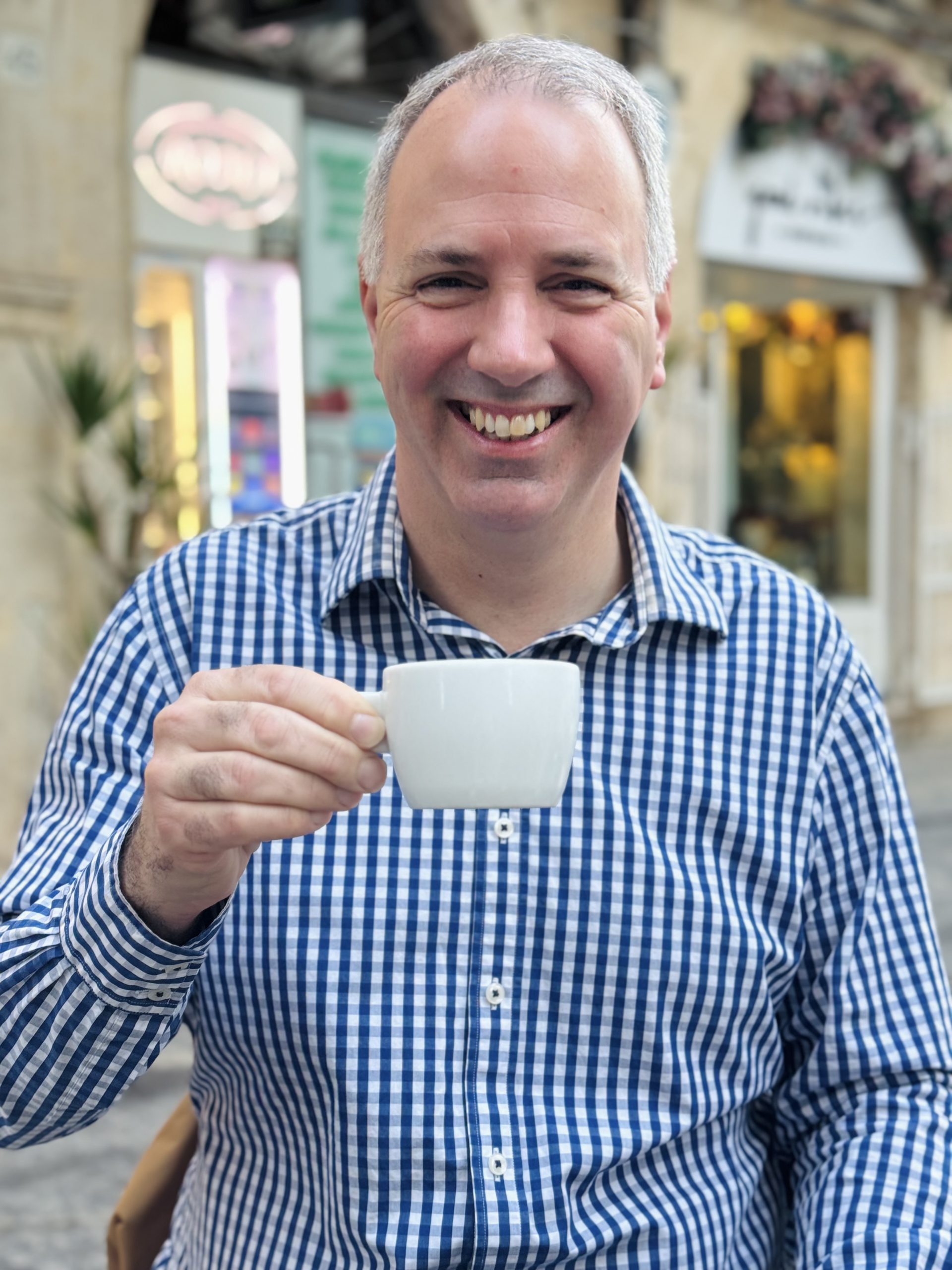 Gran Caffe del Duomo. The perfect spot on the astonishing Duomo square, light bouncing off the vast white marble pavement. Just us here, in a cafe that is full to the rafters in the summer. A lovely, patient waitress who indulged my (poor but improving) Italian. Mediocre coffee but we’ll let them off for the view of the amazing cathedral – even if it was completely cloaked in scaffolding this visit. A lone woman working halfway up was painstakingly restoring the facade.