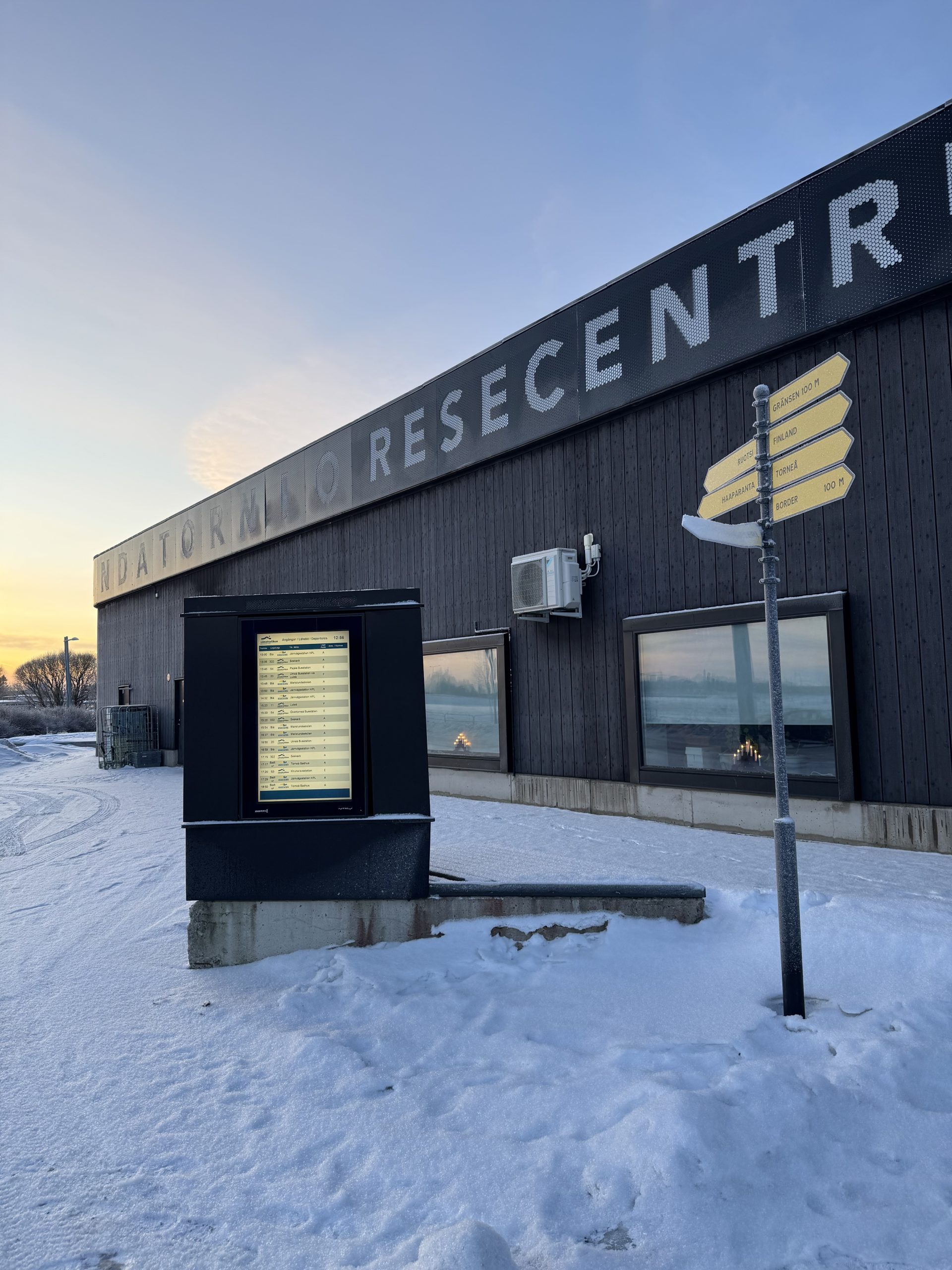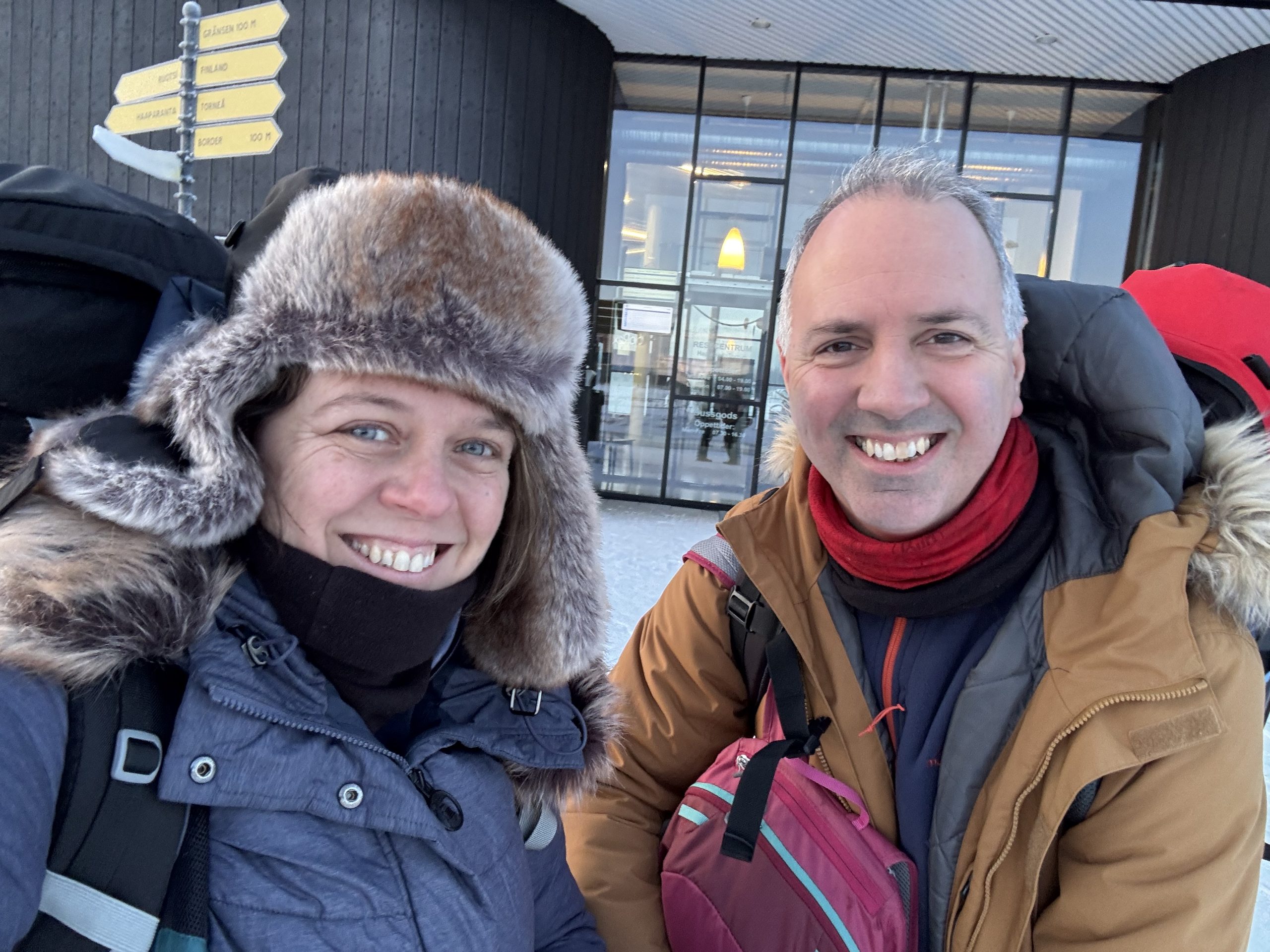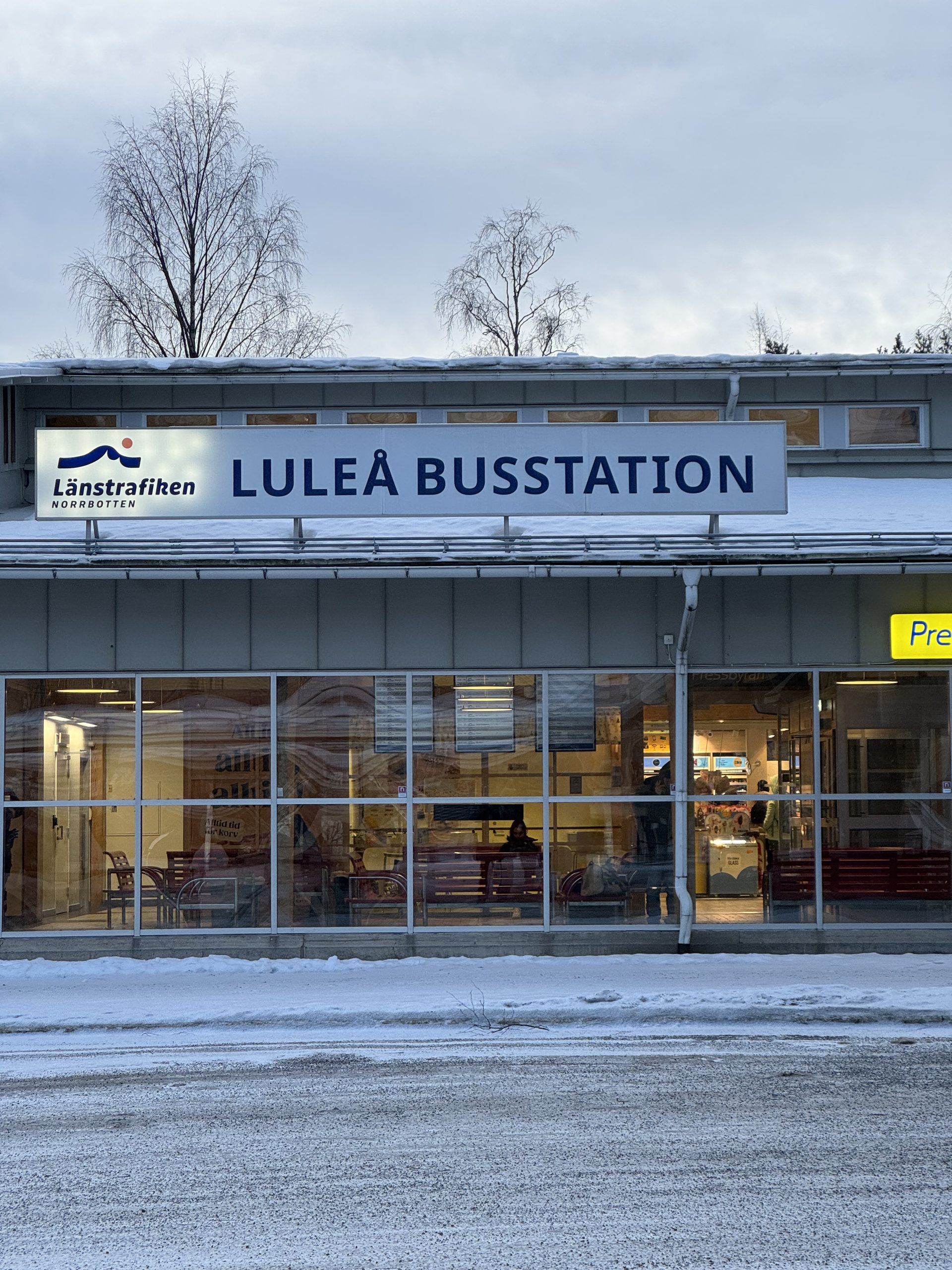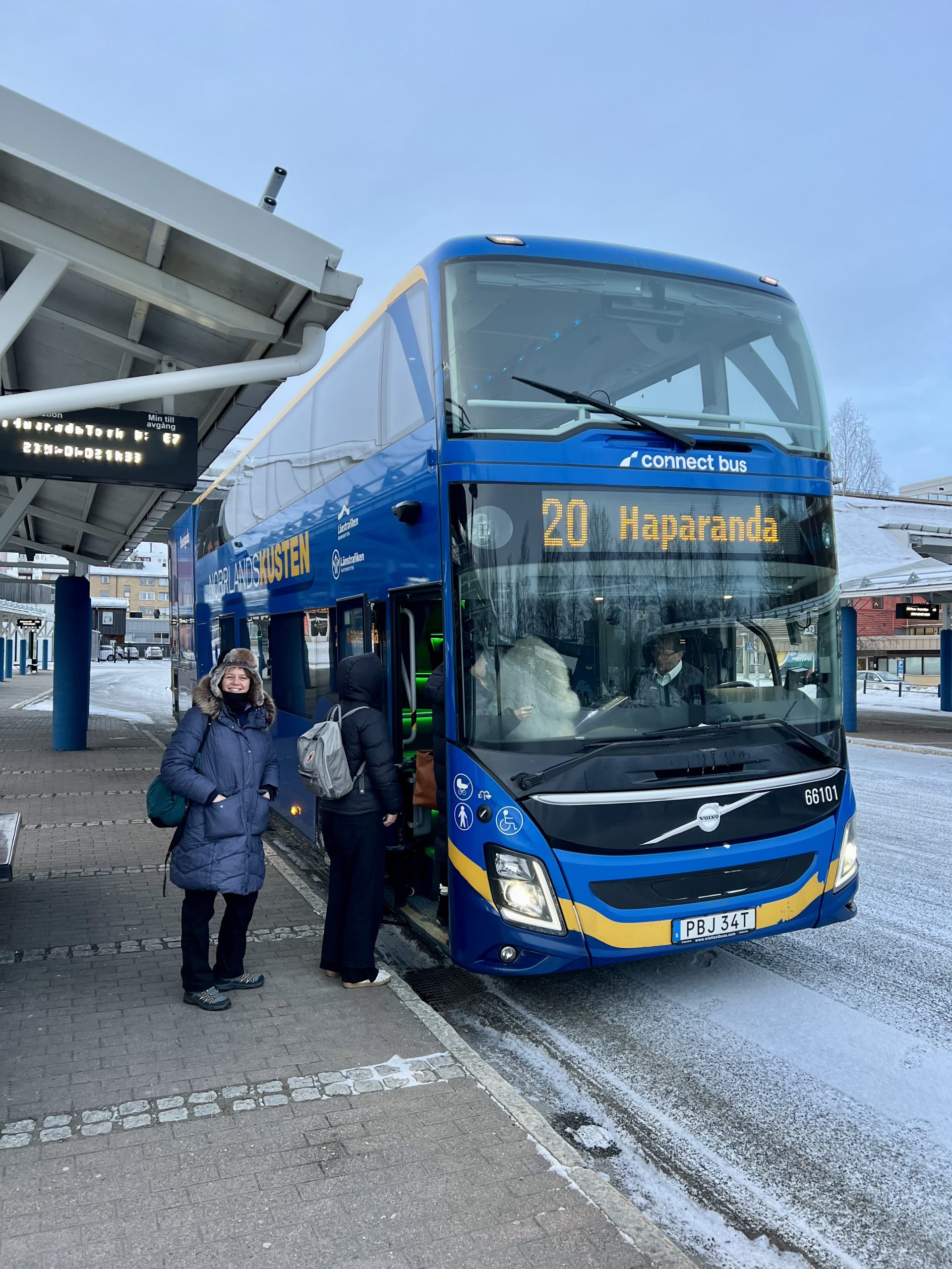 To go south we actually first needed to go north, tracing the coast of the frozen Gulf of Bothnia up into Finland. We took another thoroughly lovely bus ride, jumping on the number 20 from Luleå bus station for the 3-hour ride to the border. In an act of brilliance that we really should copy in the UK, the longer distance buses here are half bus, half delivery lorry. We watched a forklift truck load up our bus with pallets of parcels at the bus station. Result: fewer vehicles on the road and a bus line which has an extra source of income – this seems very clever.